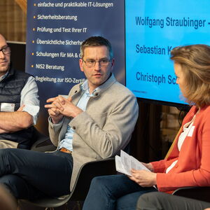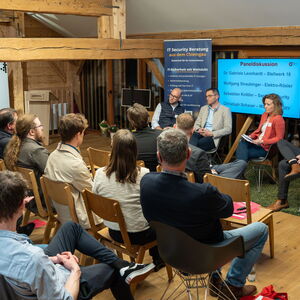 Im Anschluss an die Präsentationen fand eine offene Podiumsdiskussion statt. Die eingeladenen Expertinnen und Experten diskutierten mit dem Publikum über die größten Herausforderungen und Lösungsansätze im Bereich Cybersicherheit.